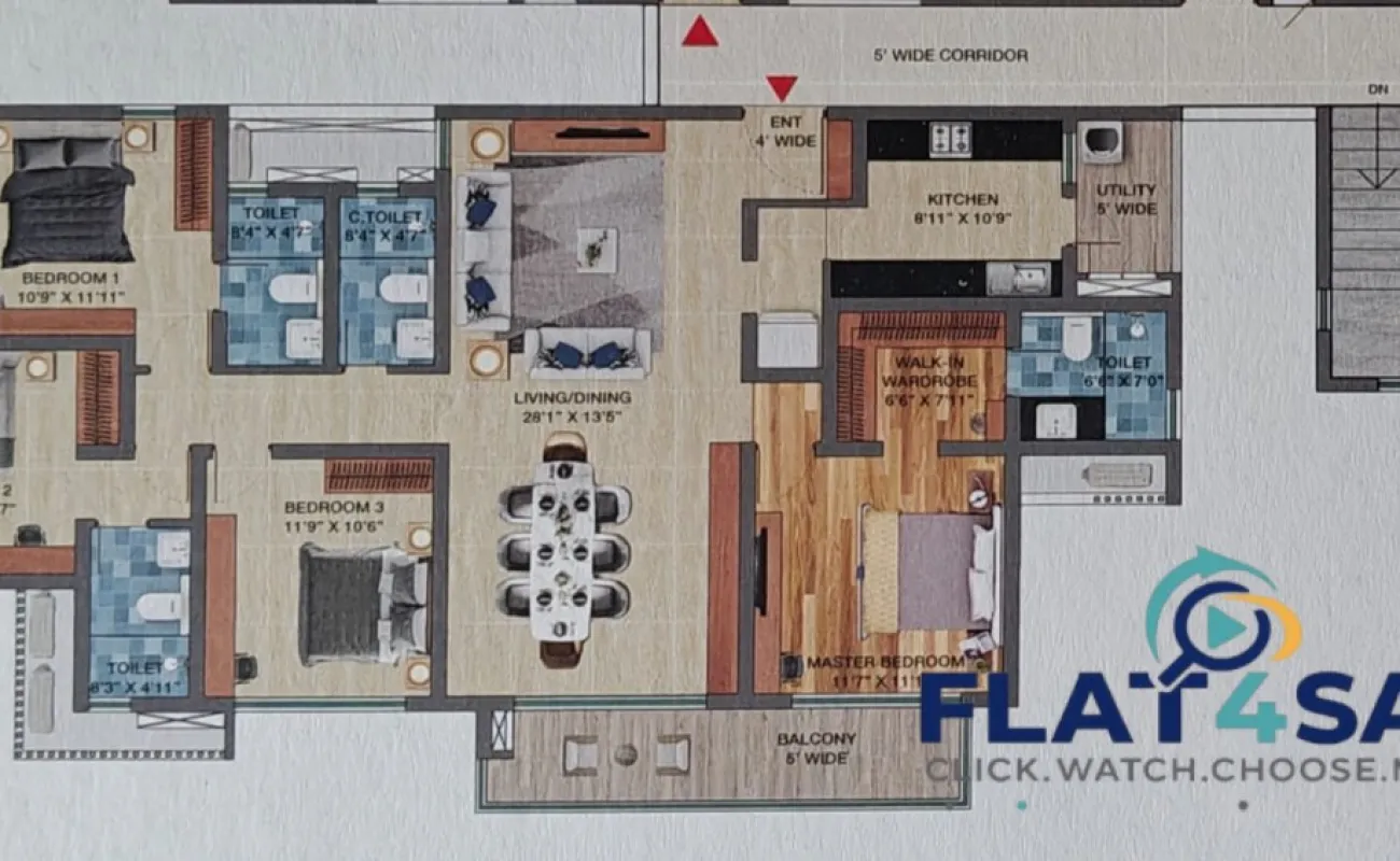 - 4 BHK I 2130 - 2458 ( Built Up area ) Area