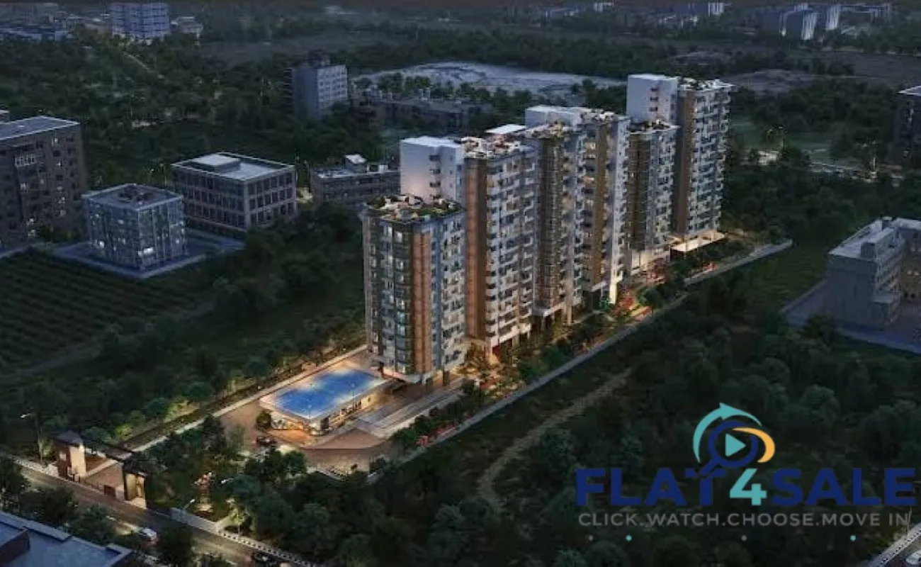 Utilities: 100% power backup for common areas (specific limits for flats), Rainwater Harvesting, and an on-site Water Treatment Plant.