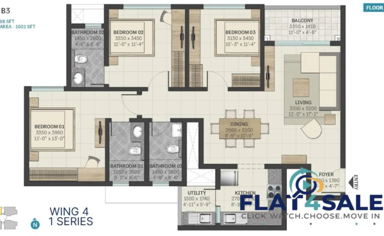 - 3 BHK I 1869 + 25 - 1946 - 25 Area