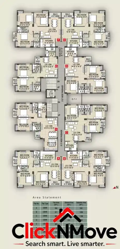 3 BHK unit range from 1122 to 1261 sq ft